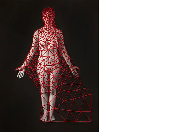 Her photographs of the woman’s physique are printed on poly-cotton and then embroidered with thread and yarn in symbolic patterns and mounted on wooden surfaces. At times, Font uses found objects such as doilies and buttons to represent the traditional roles of women in the home. The laborious manual application of fabrics and embroidery represent the artist’s expression of her emotional experiences. There are various works that are a series of photographs, or installations that refer to a woman’s cycles of fertility and how the biological phases are in constant shifting evolution. In her statement, Font writes, “Through this body of work, I am interested in unveiling metaphorically the truth beneath our surface, deeper than the external body, exploring and retracing what was once felt by it, as well as the complex relationship between reality and the memory that lives within.”
